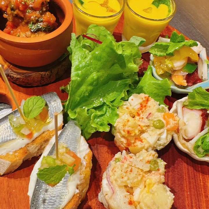 その日のオススメを盛り合わせたタパス&ピンチョスの盛り合わせ👯