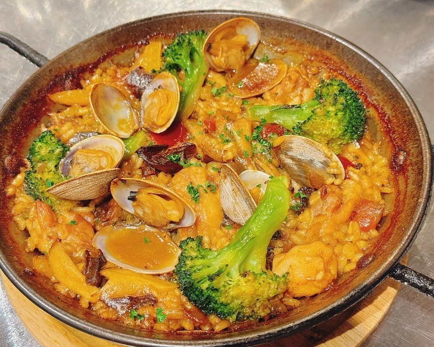 メヒカリのフリット、チキン、国産アサリとポルチーニ茸のパエリアなどなど🥘
