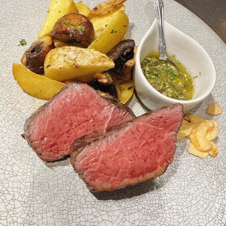 ハーブと酸味が絶妙なチミチュリソースをつけると赤みのお肉もいろんな味わいに変化します!赤ワイン シラーとも相性🙆♀️