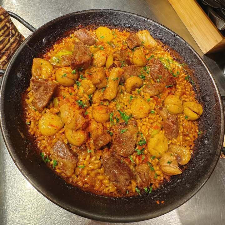 マッシュルームのセゴビア風、スペイン産のイベリコ豚と山栗のパエリア🥘など