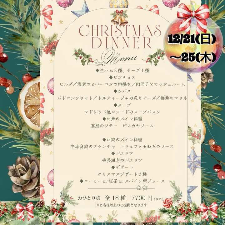 #スペインバルtiburon #スペインバルティブロン #スペイン料理 #スペインバル #十三 #レストラン #パエリア #十三グルメ #コース #隠れ家 #インボイス登録店 #パエリア #クリスマスディナー #デコレーション #ディナー