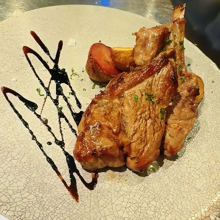 美味しい骨付きラム肉のプランチャや