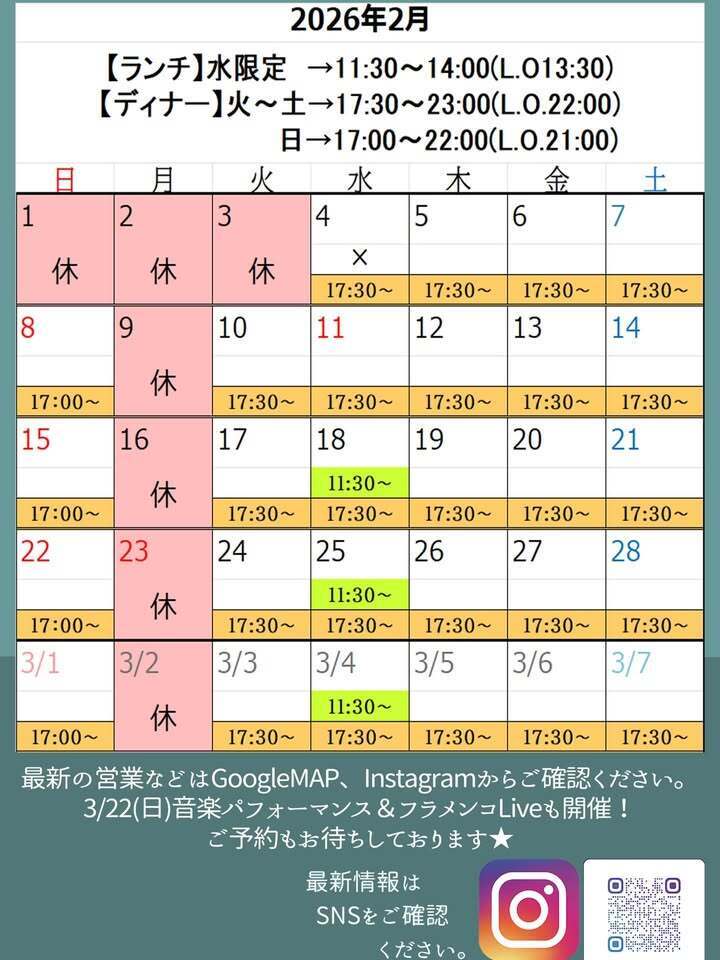また2月中に3/22(日)のフラメンコ&投げ銭ライブのご予約も開始します。